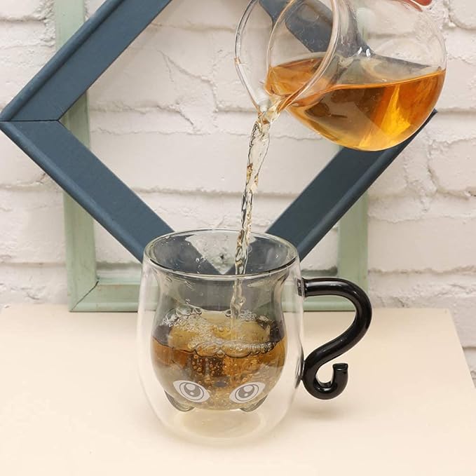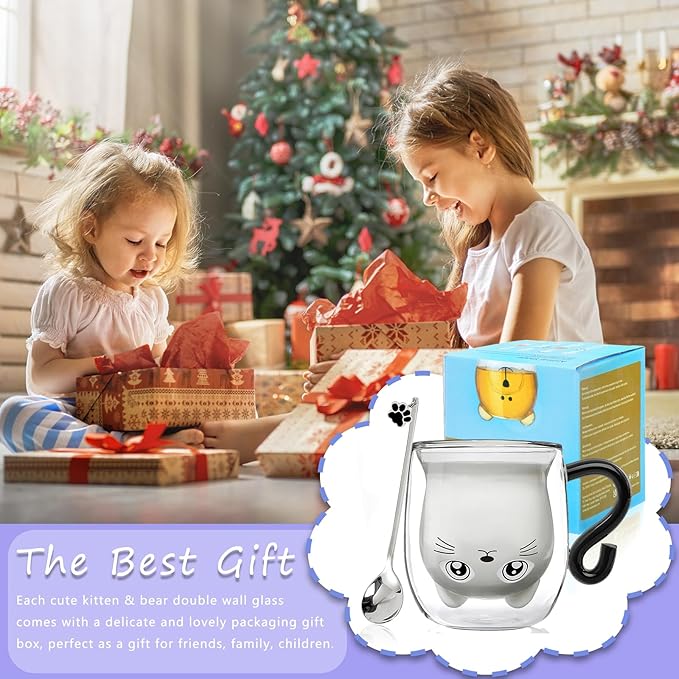 Black Cat Mug Cute Mug with Handle Double Walled Coffee Mugs Kawaii Cat Presents for Women Glass Mugs Tea Cup Cute Birthday Gifts for Cat Lovers Ideas Halloween Christmas