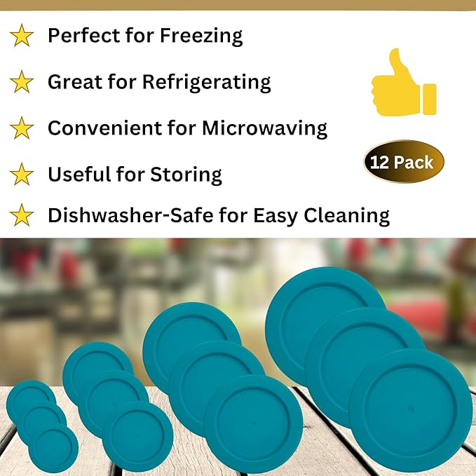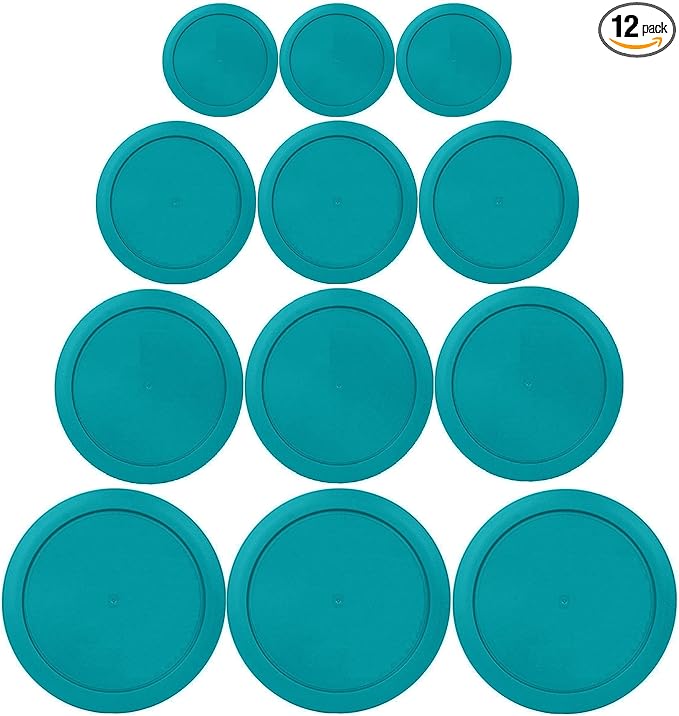 1, 2, 4 & 7 Cup Turquoise Replacement Lids/Covers for Pyrex, Anchor Hocking & KlareWare Storage Bowls *Lids Only Glass Container Not Included* (12 Pack *Three of Each Size*)