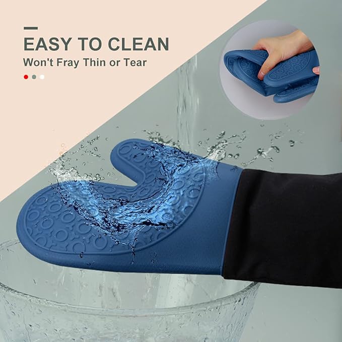 sungwoo Extra Long Silicone Oven Mitts, Heat Resistant Oven Gloves with Quilted Liner Non-Slip Textured Grip Perfect for BBQ, Baking, Cooking and Grilling - 1 Pair 14.6 Inch Royal Blue & Black