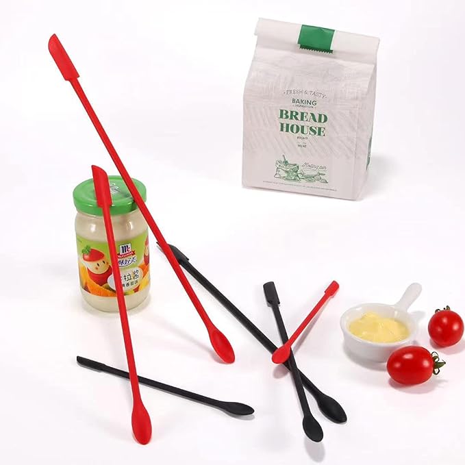 8 Pieces Mini Silicone Spatula Set, Small Rubber Spatula for Makeup, Thin Jar Scraper for Kitchen (8, BLACK+RED)