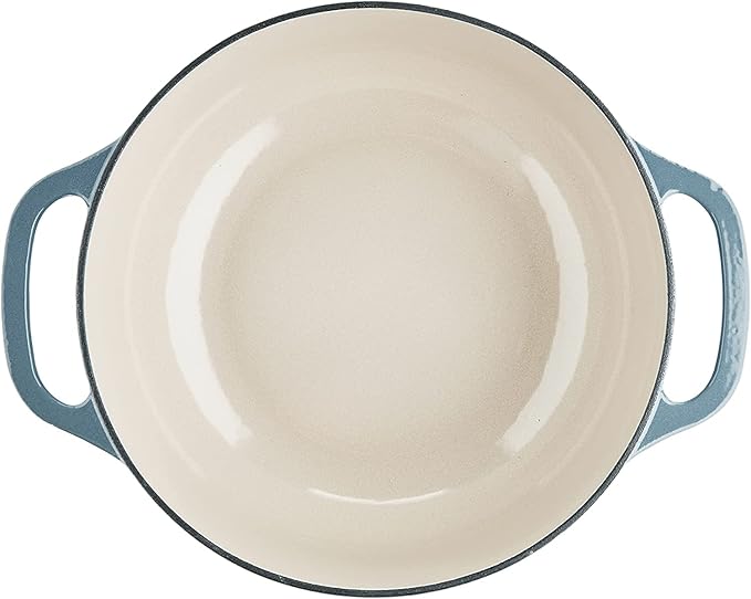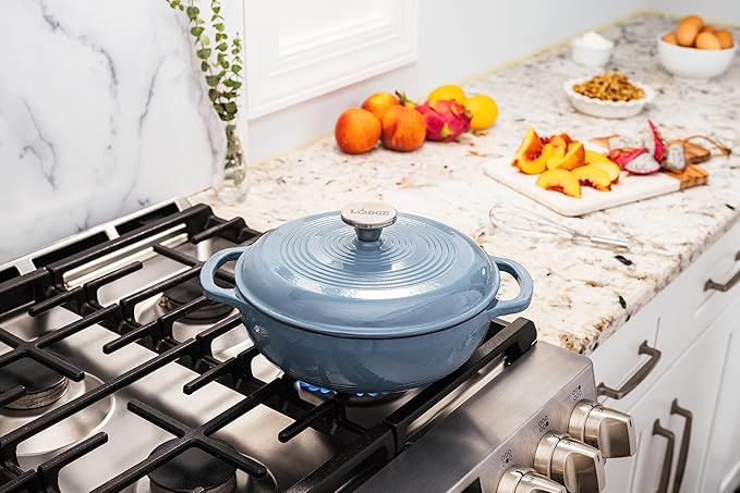 Lodge 3 Quart Enameled Cast Iron Dutch Oven with Lid – Dual Handles – Oven Safe up to 500° F or on Stovetop - Use to Marinate, Cook, Bake, Refrigerate and Serve – Storm Blue