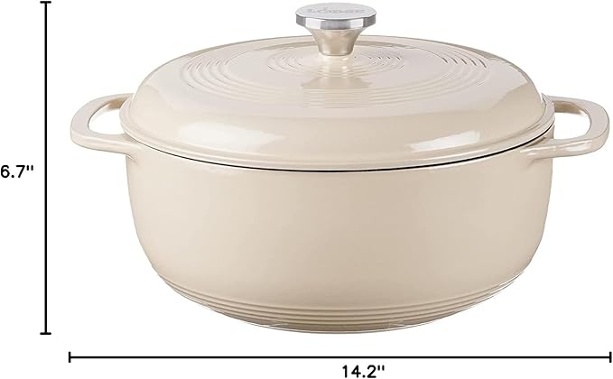 Lodge 7.5 Quart Enameled Cast Iron Dutch Oven with Lid – Dual Handles – Oven Safe up to 500° F or on Stovetop - Use to Marinate, Cook, Bake, Refrigerate and Serve – Sandalwood