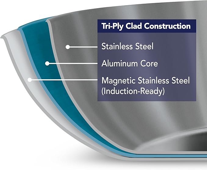 Tramontina Boston Tri-Ply Clad Stainless Steel 10-Inch Frying Pan, Induction-Ready Skillet, Dishwasher-Safe, NSF-Certified