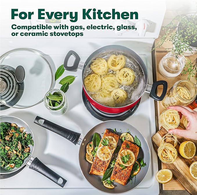 About This INFINITE COOKING POSSIBILITIES: Unleash your culinary creativity with this stylish non stick pots and pan set by BELLA.... Read more