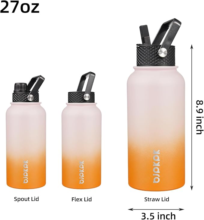 BJPKPK Insulated Water Bottles with Straw Lid, 27oz Stainless Steel Water Bottle with 3 Lids, Leak Proof BPA Free Metal Thermo, Mugs, Tumblers, Keep Cold Hot - Coral