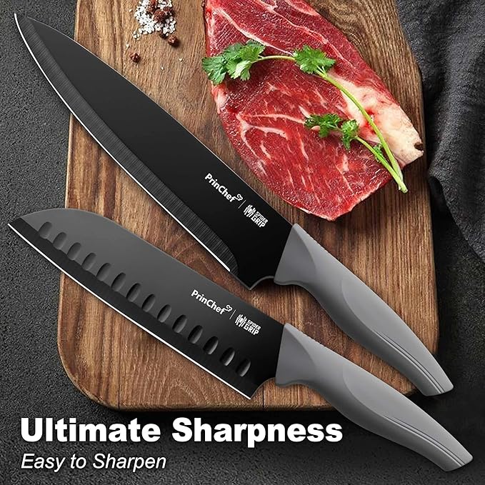 PrinChef Knife Set, 19 Pcs Rust Proof Knives Set for Kitchen, with Acrylic Stand, Sharpener, Scissors and Peeler, Stainless Steel kitchen knife set Nonstick and No Scratch