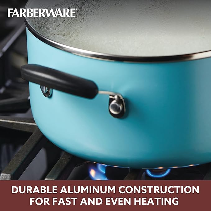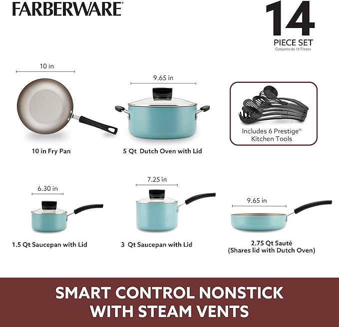 Farberware Smart Control Nonstick Cookware Pots and Pans Set, 14 Piece, Aqua