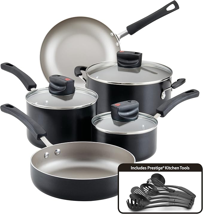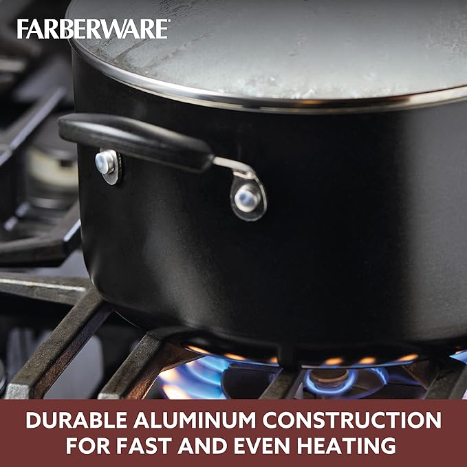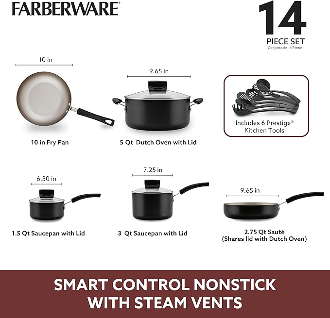 Farberware Smart Control Nonstick Cookware Pots and Pans Set, 14 Piece, Black