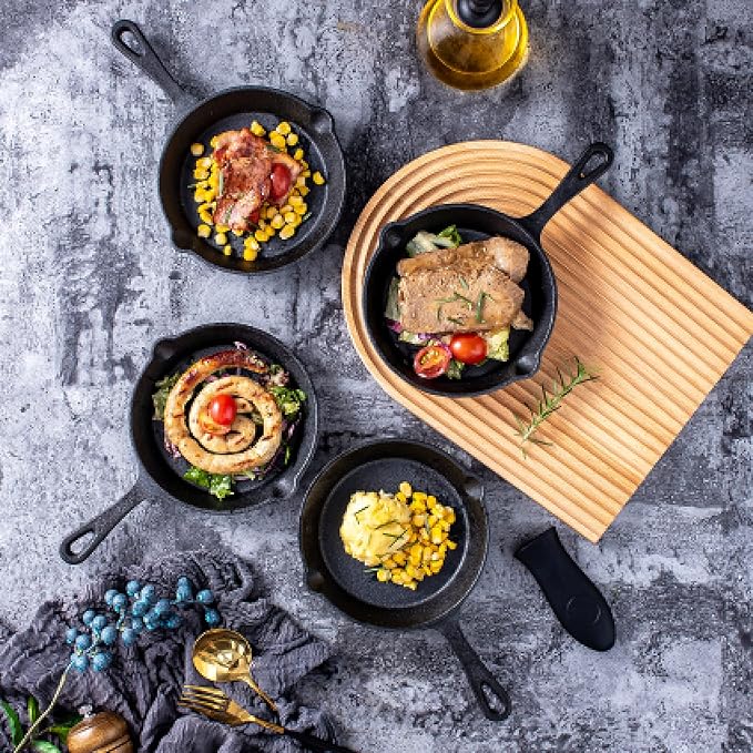 About This Even Heat Distribution: Each cast iron skillet ensures uniform cooking, making it ideal for searing, sautéing, stir-frying, baking,... Read more