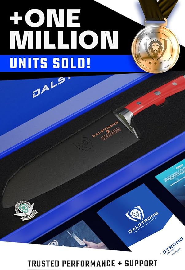 Dalstrong Santoku Knife - 7 inch - Gladiator Series - High Carbon German Steel - Crimson Red ABS Handle Kitchen Knife - Vegetable Knife - Sheath Included - Cooking Chef Knife - NSF Certified