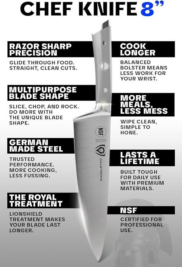 Dalstrong Chef Knife - 8 inch - Gladiator Series - Smoke Grey ABS Handle - Forged High Carbon German Steel - Full Tang Kitchen Knife - w/Sheath - Razor Sharp Cooking Chef's Knife - NSF Certified
