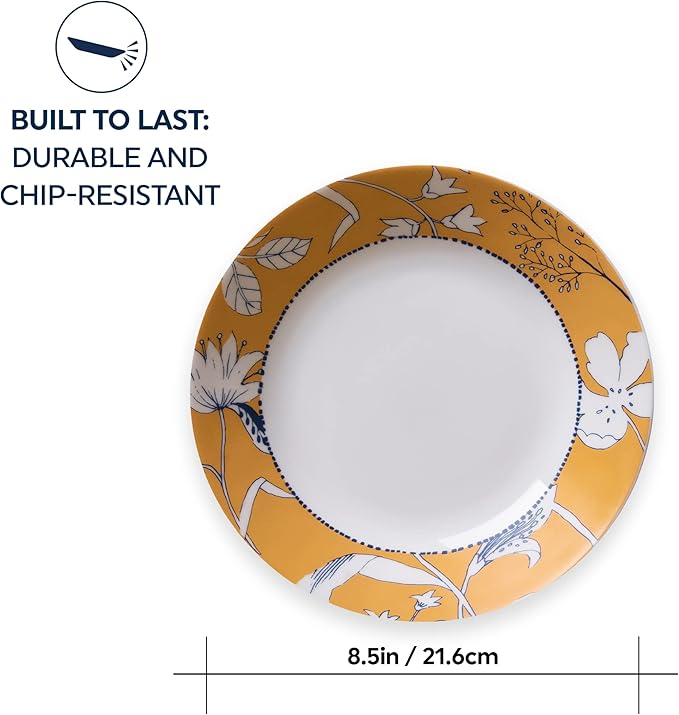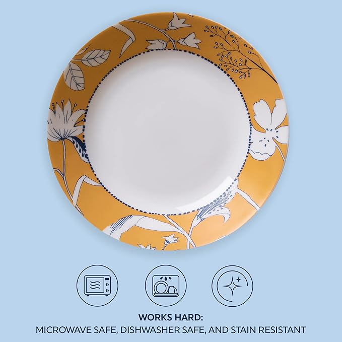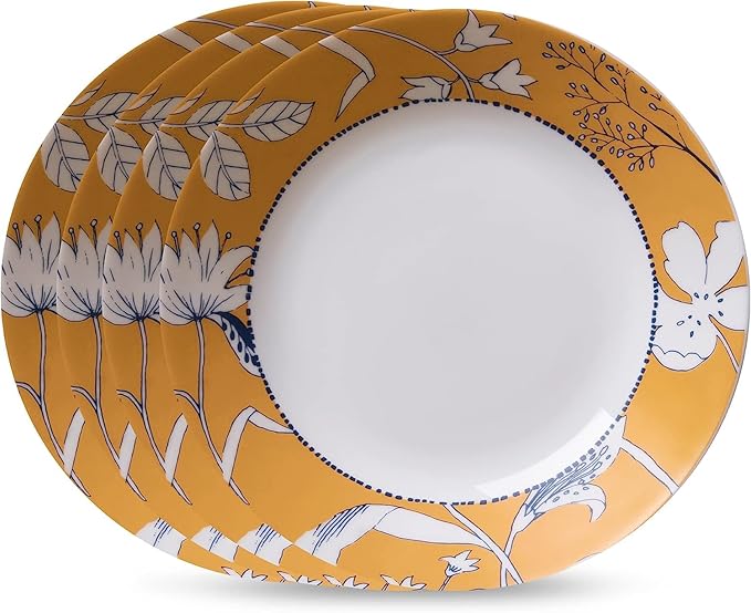 Corelle MilkGlass 4-Piece (23 Oz) 8.5" Pasta Bowl Plate Set, Higher Rimmed Glass Dinnerware For Pasta Salad Meal, Rutherford