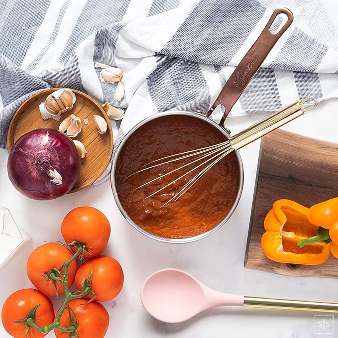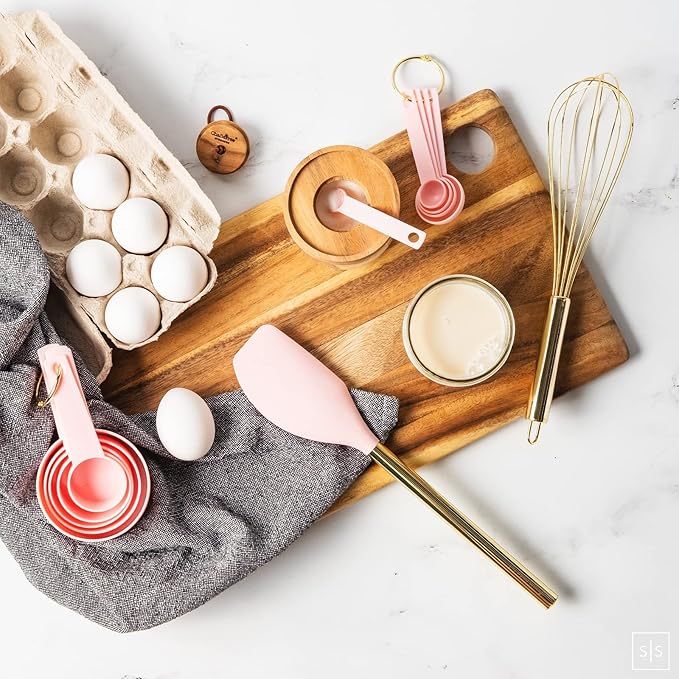 Pink and Gold Kitchen Utensils Set - 17-Piece Kitchen Tools Include Silicone Cooking Utensils, Spatula Holder, Measuring Cups and Spoons for Baking, Cooking - Stylish Pink Kitchen Accessories