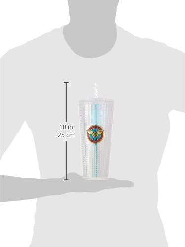 Spoontiques DC Comics Diamond Tumbler, 20oz - Textured Cup w/Staw, Double Wall Insulated, BPA Free - Wonder Woman