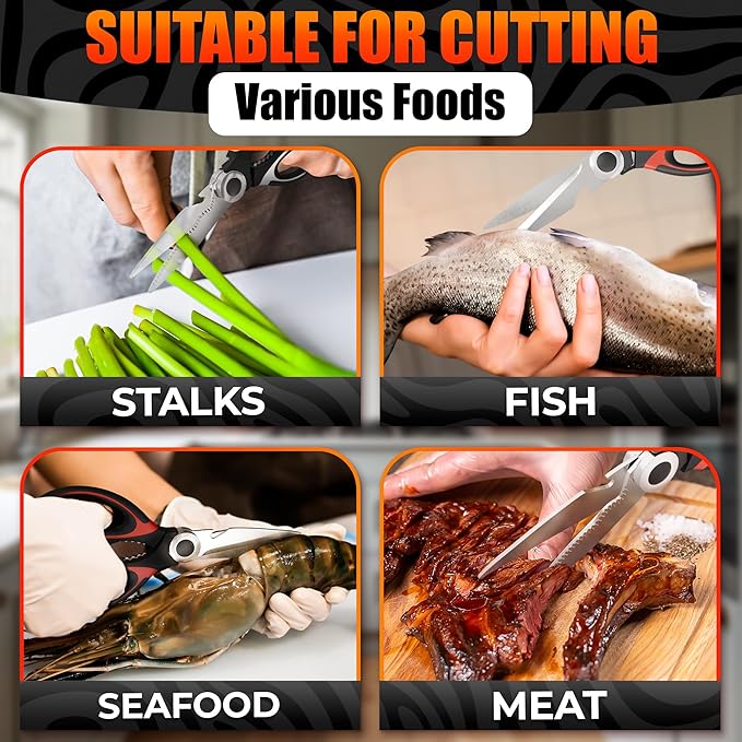 Kitchen Shears for Food Heavy Duty – Kitchen Scissors All Purpose with Cover, 2CR13 Stainless Steel Blades, Rust-Resistant Utility Scissors with Bottle Opener – Cuts Fish, Meat, Nuts & Vegetables
