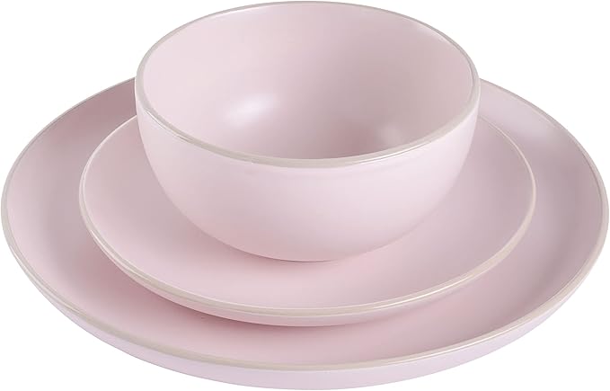 Gibson Home Rockaway 12-Piece Round Stoneware Dinnerware Set, Service for 4 – Pink Plates and Bowls, Modern Matte Finish, Microwave & Dishwasher Safe