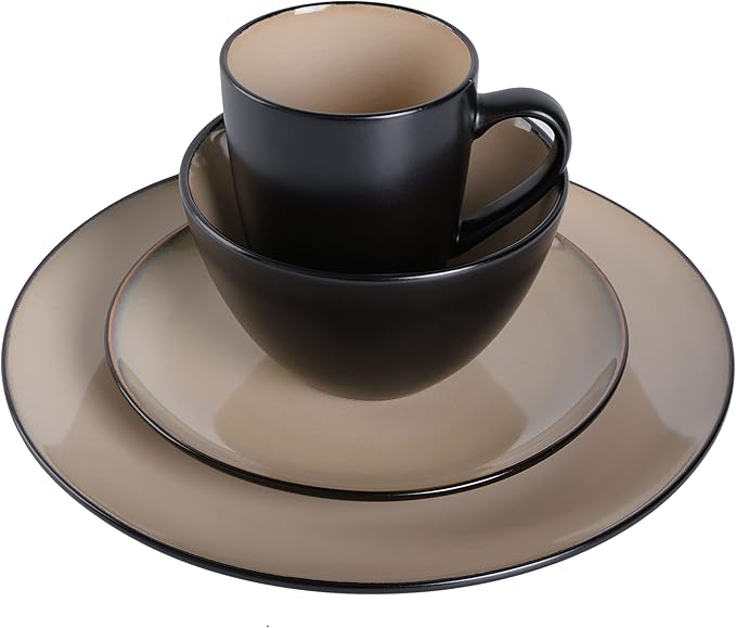Gibson Elite Soho Lounge 16-Piece Round Reactive Glaze Stoneware Dinnerware Set, Service for 4 – Taupe Plates and Bowls