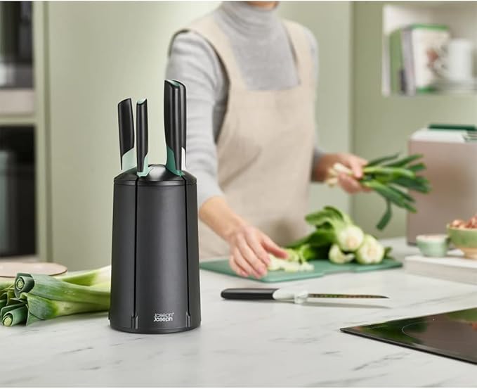Joseph Joseph Elevate Knives 5-piece Carousel Set, Japanese Stainless Steel Knife Block - Editions - Sage Green and Black