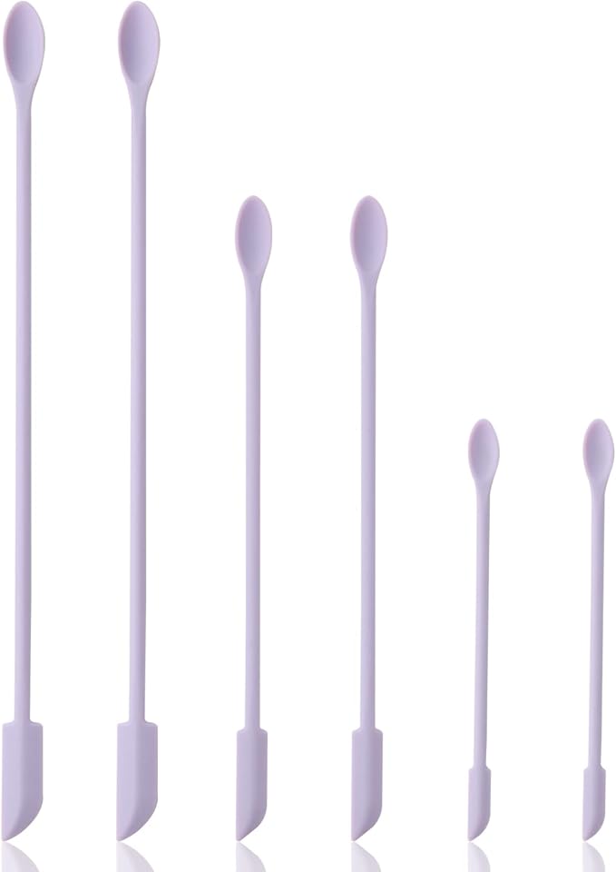 6 Pieces Multi Size Makeup Spatula, Beauty Spatula, Mini Small Silicone Spatula Set for Beauty and Kitchen, Tiny Scraper for Jar, Kitchen Bottles, Cosmetic (Lavender)
