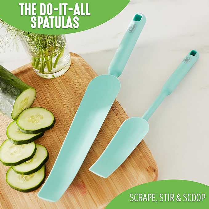 GreenLife Cooking Tools and Utensils, Easy Reach Silicone Spatula Set for Baking Mixing and Stirring, Heat and Stain Resistant, Dishwasher Safe, Turquoise