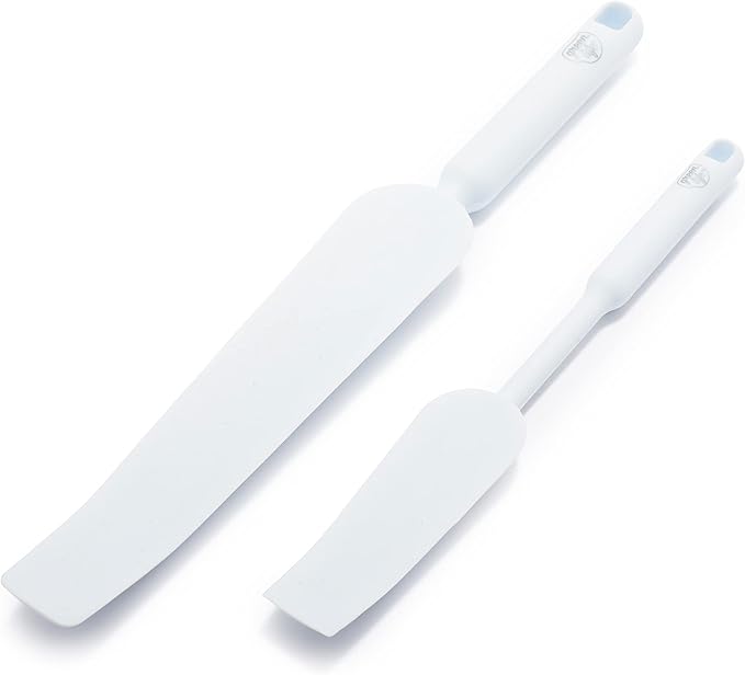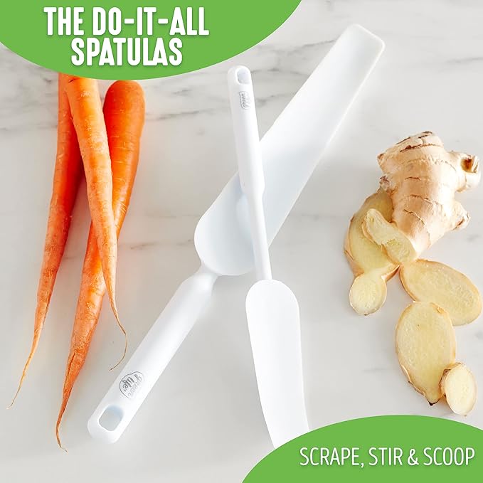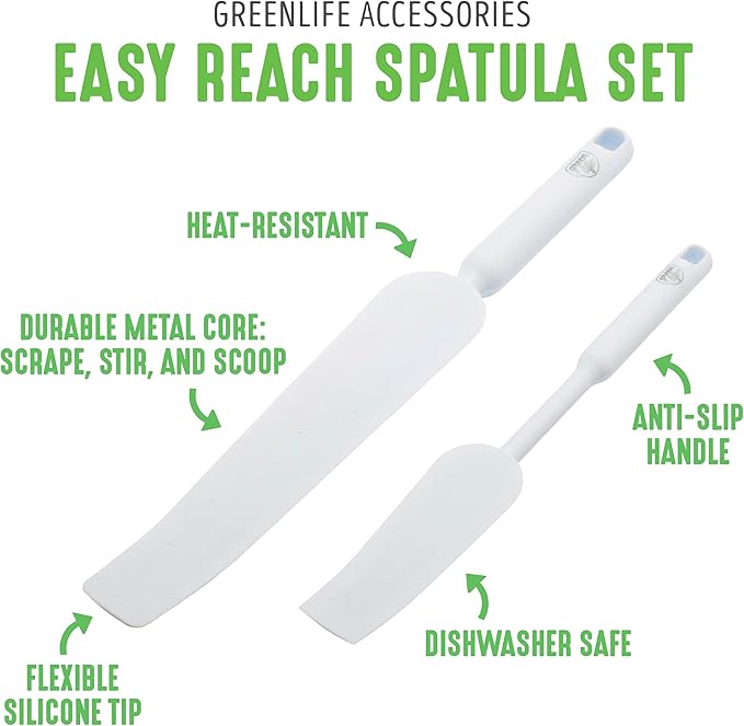 GreenLife Cooking Tools and Utensils, Easy Reach Silicone Spatula Set for Baking Mixing and Stirring, Heat and Stain Resistant, Dishwasher Safe, White