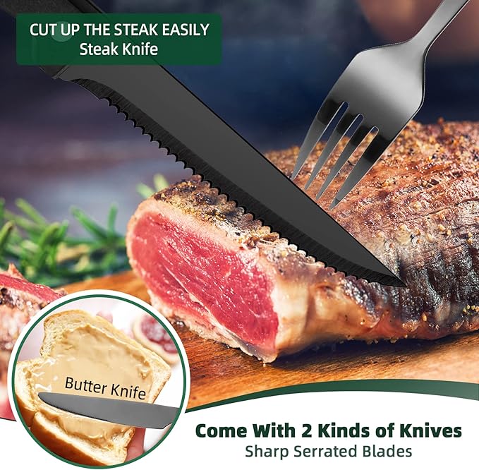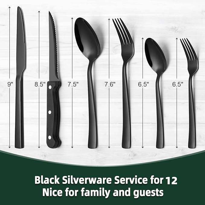 72-Piece Stainless Steel Black Silverware Set - CEKEE Flatware Kitchen Utensils Set, Cutlery Set for Home & Restaurant, Premium Knife Fork Spoon Set with Steak Knives, Heavy Duty & Dishwasher Safe