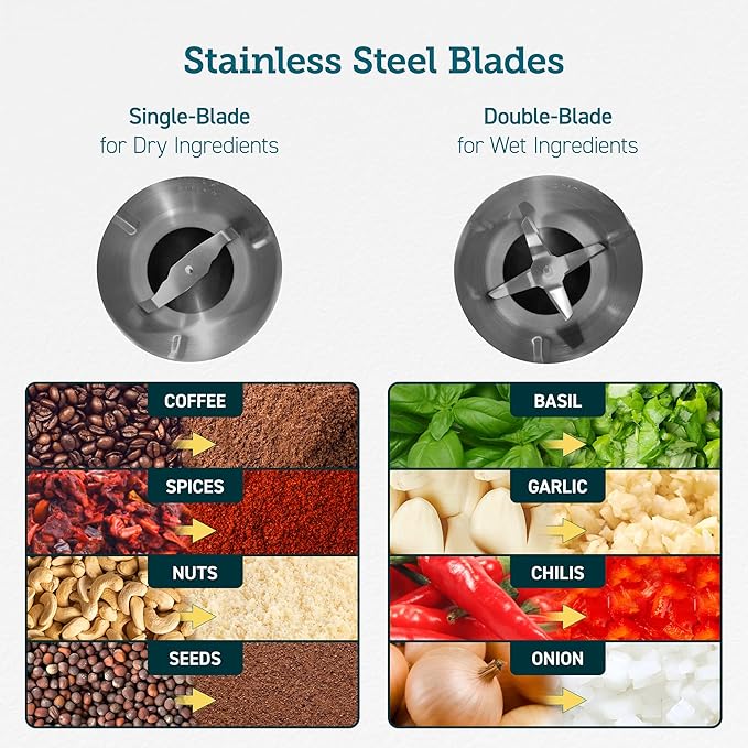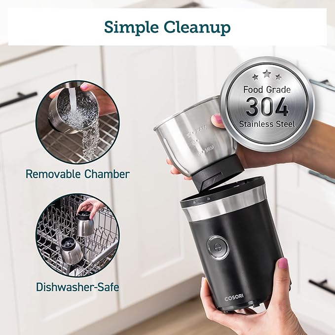COSORI Electric Coffee Grinders for Spices, Seeds, Herbs, and Coffee Beans, Spice Blender and Espresso Grinder, Wet and Dry Grinder, Included 2 Removable Stainless Steel Bowls, Black