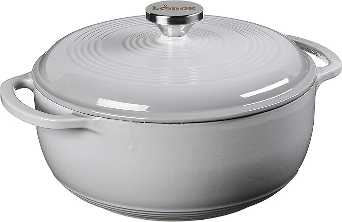 Lodge 4.5 Quart Enameled Cast Iron Dutch Oven with Lid – Dual Handles – Oven Safe up to 500° F or on Stovetop - Use to Marinate, Cook, Bake, Refrigerate and Serve – Gray