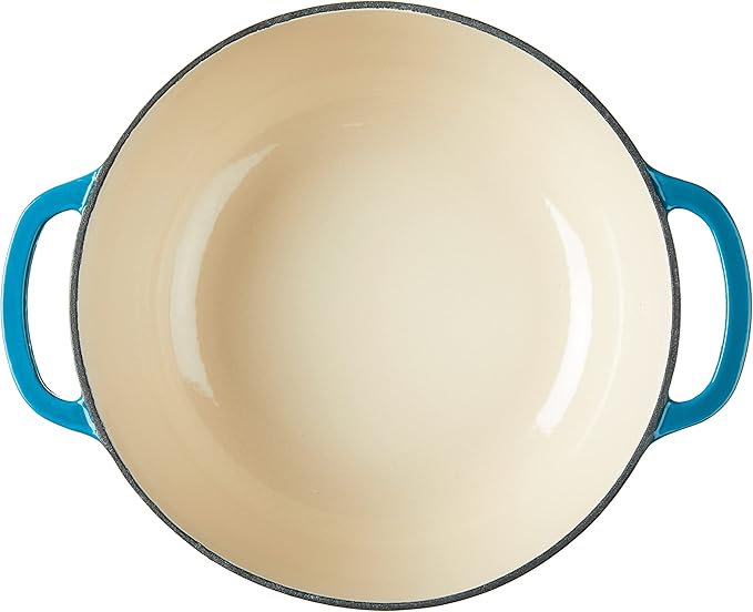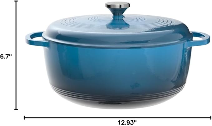 Lodge 7.5 Quart Enameled Cast Iron Dutch Oven with Lid – Dual Handles – Oven Safe up to 500° F or on Stovetop - Use to Marinate, Cook, Bake, Refrigerate and Serve – Cornflower Blue