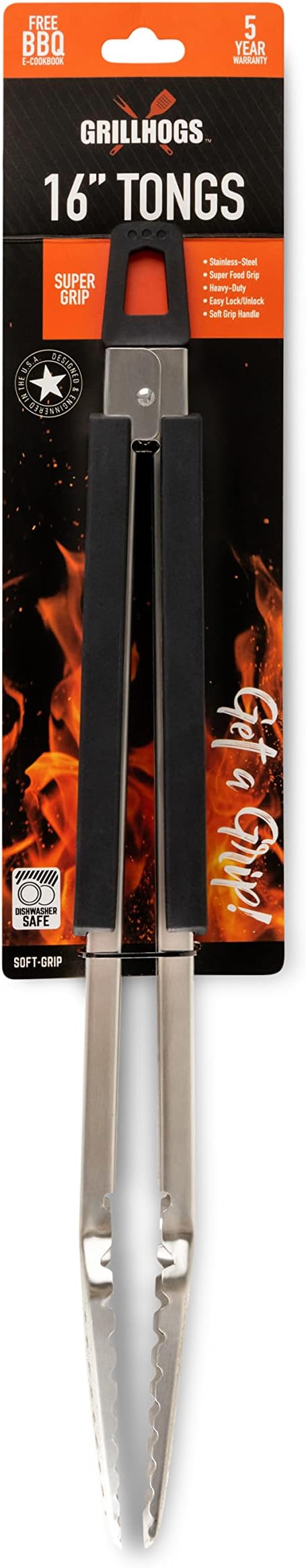 12" Long Tongs 18/0 Stainless Steel BBQ Grill Tongs with Durable Soft Grip Handle for Cooking - Durable Grilling Accessory, Tongs for Cooking & Kitchen, Outdoor Barbecue, Easy to Clean