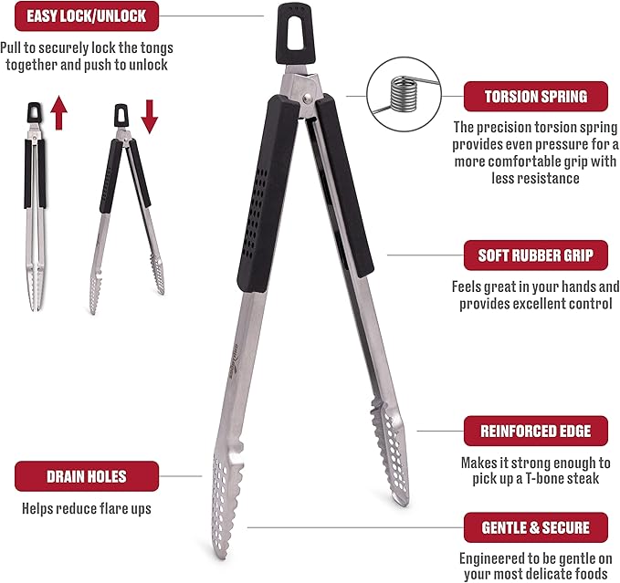 About This PREMIUM BUILT KITCHEN ESSENTIAL: These stainless steel tongs are a must-have for any kitchen, indispensable for flipping, turning,... Read more