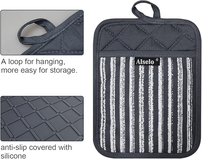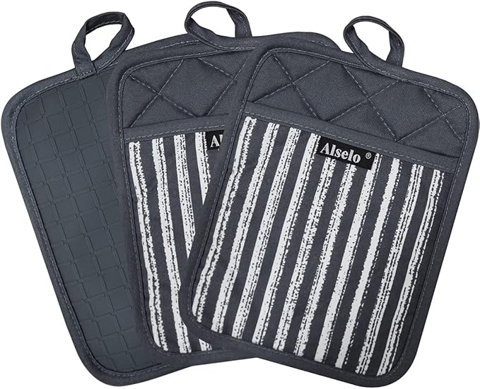 Silicone Pot Holders Set of 3 Heat Resistant & Non Slip Potholders, Professional Oven Hot Pads with Pockets Mitts for Kitchen Cooking Baking Barbecue