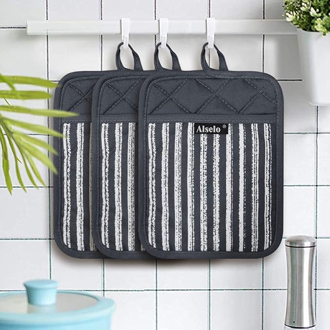 About This 1.PERFECT SIZE & UNIQUE DESIGN: this pack of 3 rectangle shaped 7“x 9” Pot Holders, different colors for... Read more