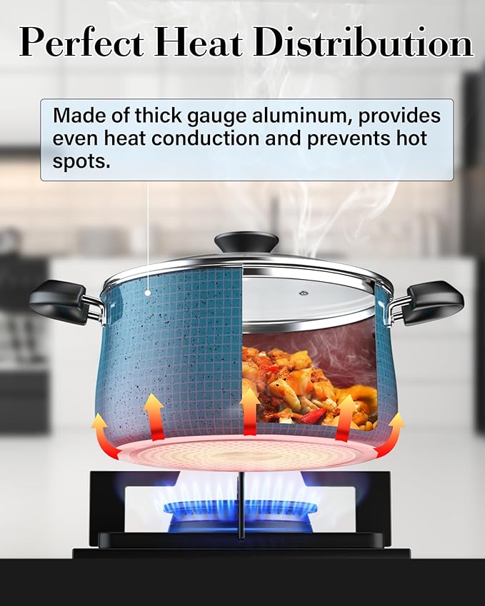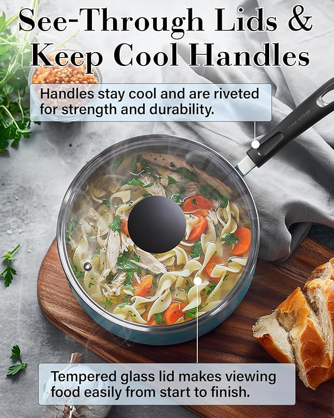About This Multi Use Cookware Set: Belly shaped 10 piece nonstick pots and pans set, includes 1.5 quart and 3... Read more