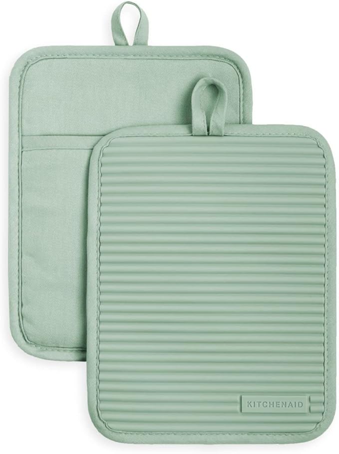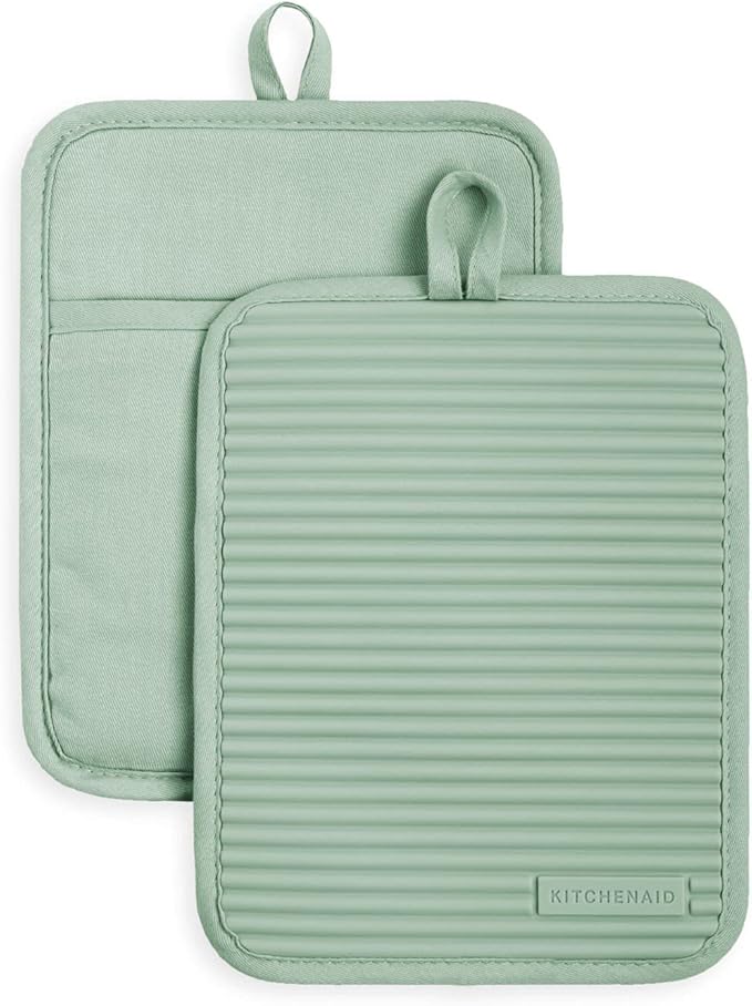 KitchenAid Ribbed Soft Silicone Pot Holder 2-Pack Set, Pistachio Green, 7"x9"