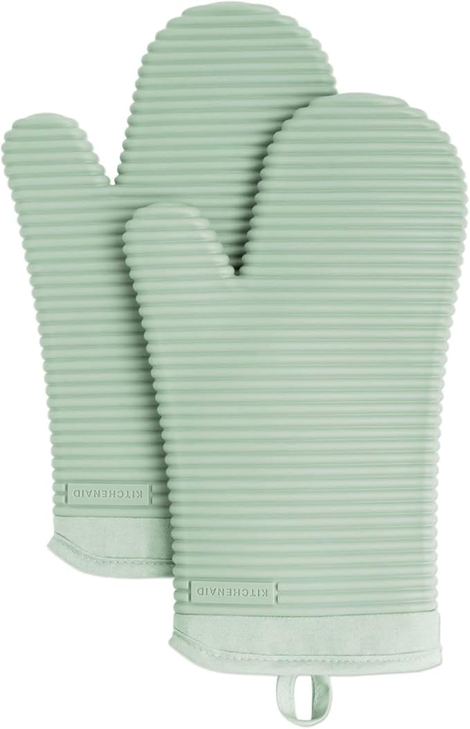 KITCHENAID Ribbed Soft Silicone Oven Mitt 2-Pack Set, 7.5"x13", Pistachio