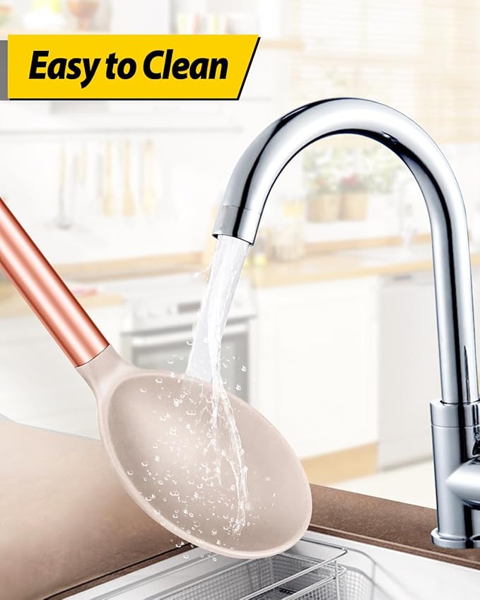 Pack of 2 Large Silicone Cooking Spoons,Non Stick Solid Basting Spoon,Heat-Resistant Kitchen Utensils for Mixing,Serving,Draining,Stirring (ROSE GOLD KHAKI)