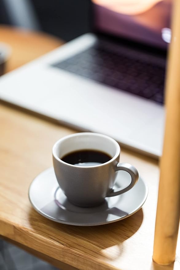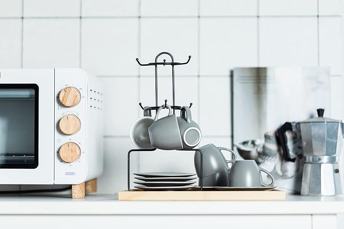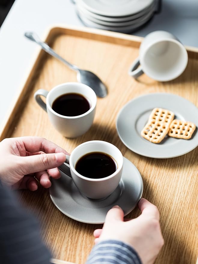 YHOSSEUN Porcelain Espresso Cups Set and Metal Stand 3 OZ Demitasse Cup For Coffee Shot, Mugs for Latte, Cafe Mocha, Cappuccino, and Tea, Serve for 6 Gray