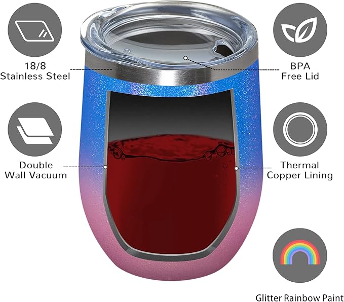 MEWAY 12oz/16 Pack Wine Tumbler Glasses with Lid - Stemless Double Wall Vacuum Stainless Steel Glitter Tumbler - Keeping Cold & Hot Cup for Coffee,for Women(Gradient Pink,Set of 16)
