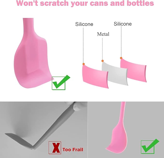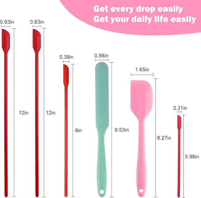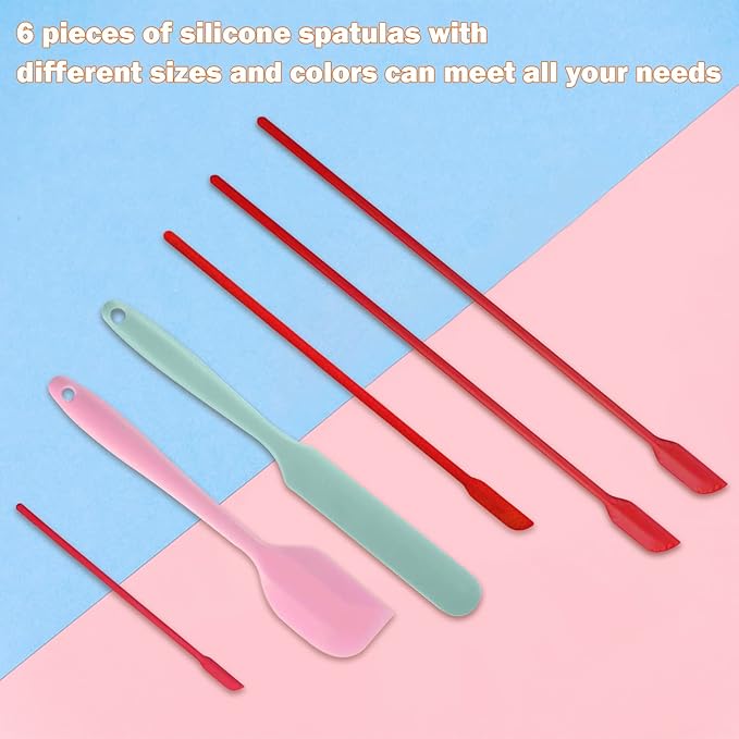 Mini Silicone Spatula Set 6 PCS Food Grade Small Jar Spatula with Long Handle Makeup Spatula Tool Heat Resistant Kitchen Utensils for Baking Cooking Mixing Tiny Scraper