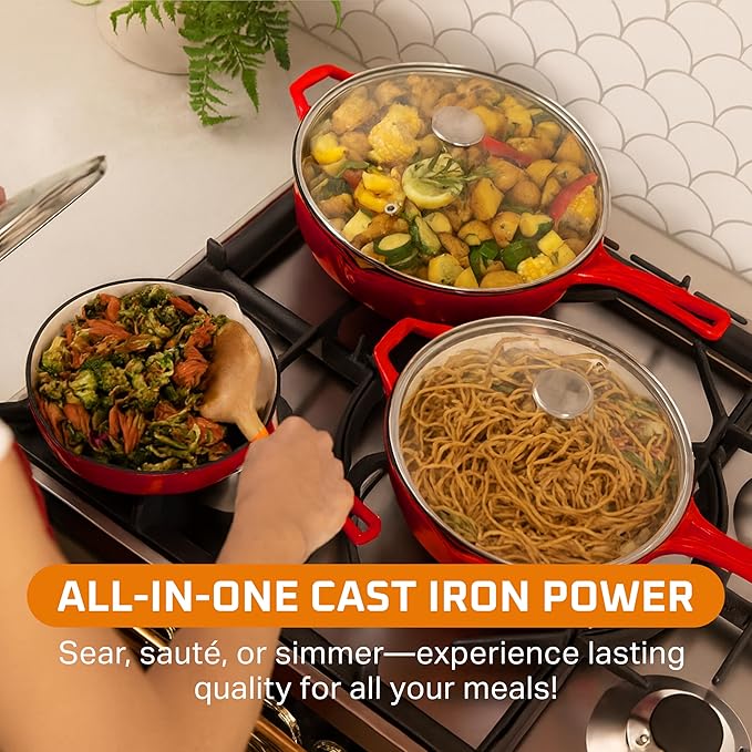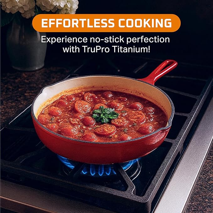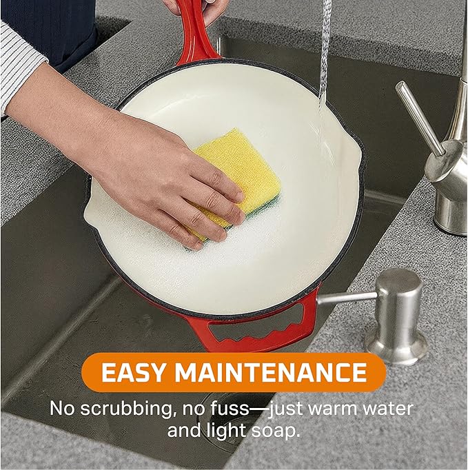 About This Nonstick Coating: The enameled cast iron skillet with lid has a titanium-reinforced ceramic coating for easy food release,... Read more