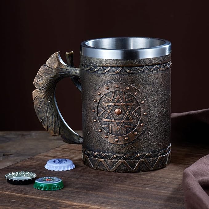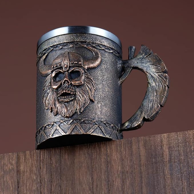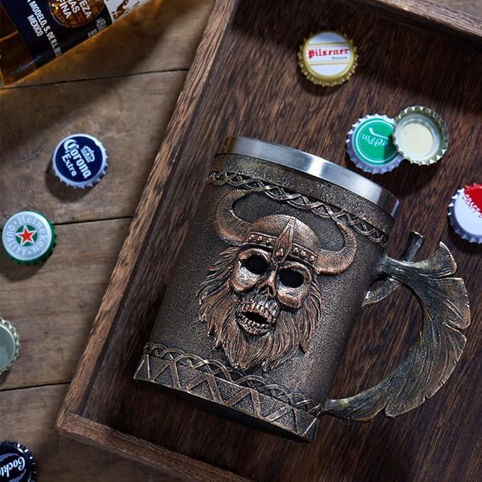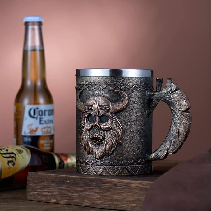 Arola Viking Axe Mug, Stainless Steel Horn Beer Cup, Viking Warrior Skull Cup Tankard, Drinking Cup Coffee Beer Steins,Medieval Skull Drinkware Mug for Coffee/Beverage/Juice17oz Gift for Men