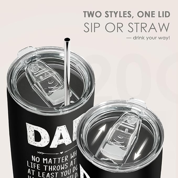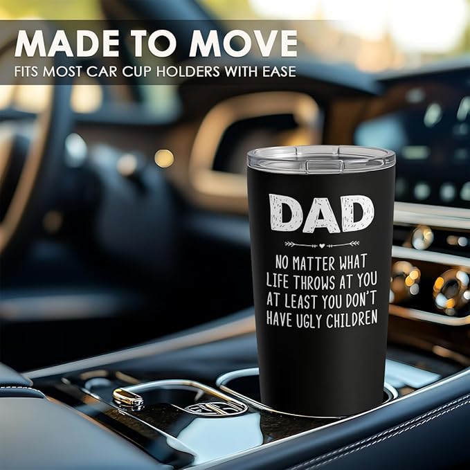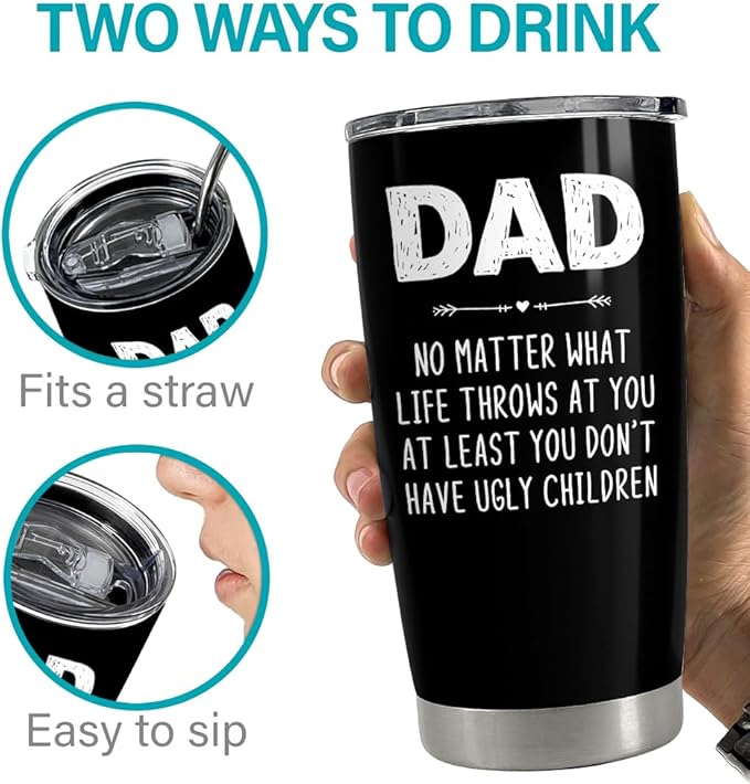 SANDJEST Dad Tumbler Gifts for Dad from Daughter Son - 20oz Stainless Steel Double-walled Insulated No Matter What Ugly Children Travel Mug Christmas, Birthday, Father's Day Gift Set with Lid & Straw
