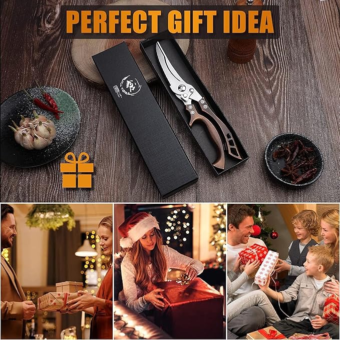 Poultry Shears, Heavy Duty Kitchen Shears with Serrated Edge, No Rust Spring Loaded, Multipurpose Stainless Steel Kitchen Scissors for Chicken, Bone, Meat, Turkey, Fish Thanksgiving Christmas Gifts