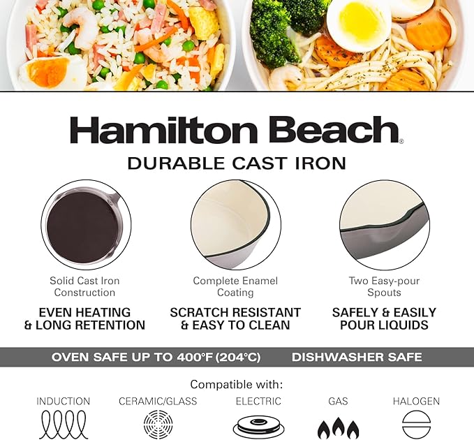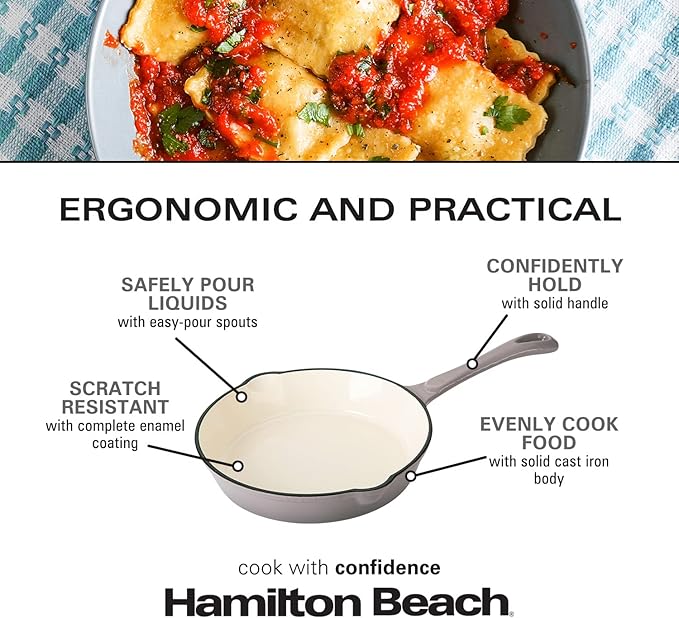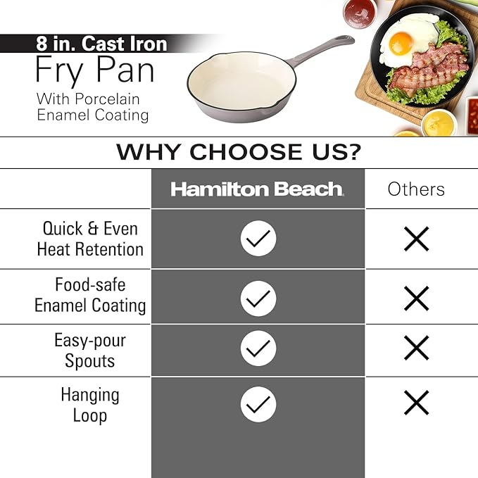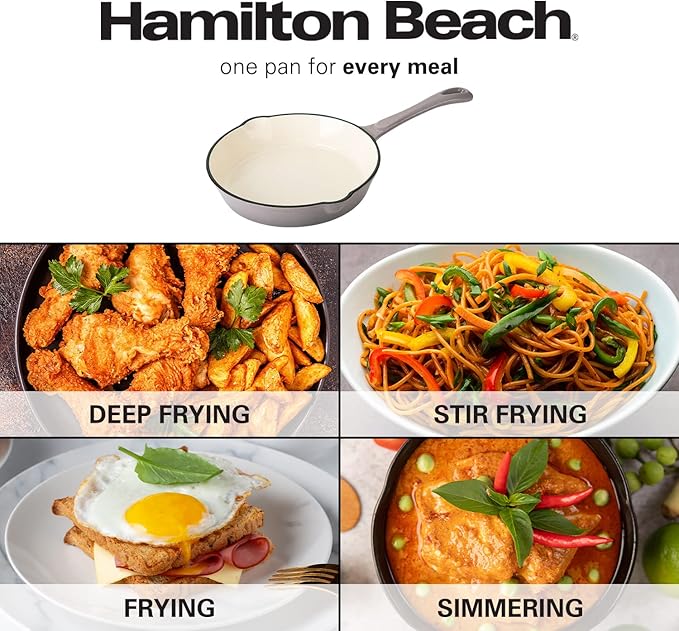 About This CAST IRON FRY PAN: The Hamilton Beach Fry Pan is made of high-quality cast iron and cream enamel... Read more