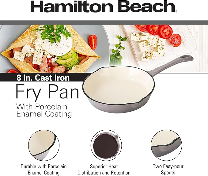 Hamilton Beach Enameled Cast Iron Fry Pan 8-Inch Navy (Gray, Fry 8-Inch)