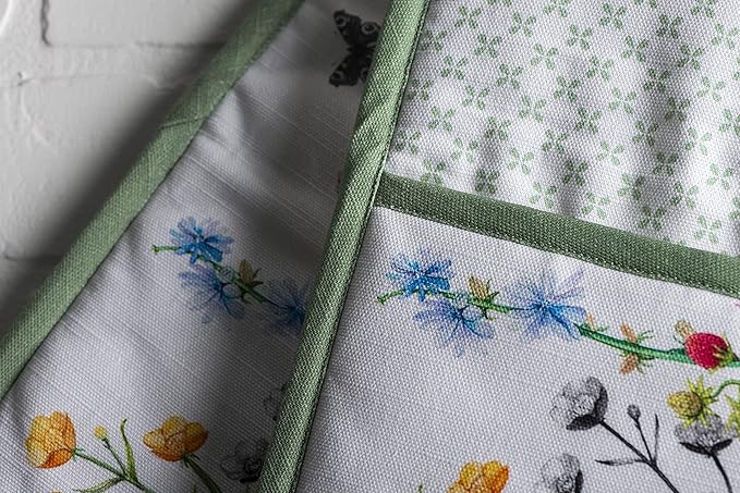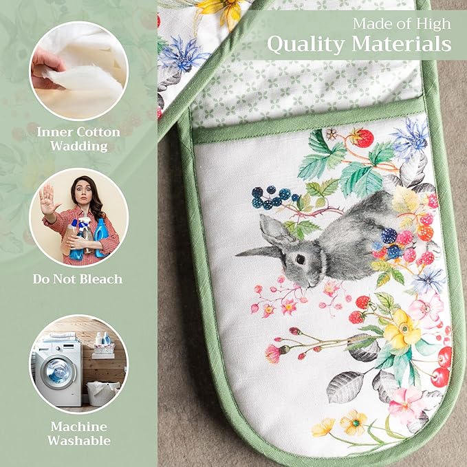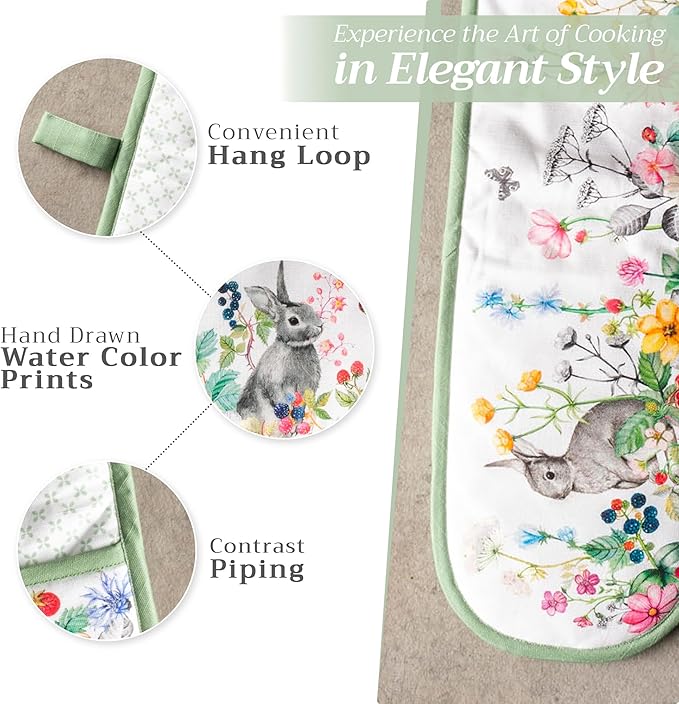 Maison d' Hermine Double Oven Mitts 100% Cotton 7"x35" Double Oven Mitt Heat Resistant BBQ Cooking Gloves with Loop, Baking, Grilling, Home, Kitchen, Handling Hot Pans Spring Summer (Printemps)