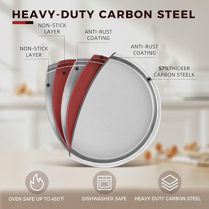 KITESSENSU Baking Pans Sets, Nonstick Bakeware Set 7-Piece with Round/Square Cake Pan, Loaf Pan, Muffin Pan, Cookie Sheet, Roast Pan, Cooling Rack, Carbon Steel Bake Set,Silver