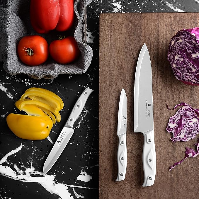 About This 1. VALUED white knife set: Kitchen Knives include 8 Inch Chef Knife, 4.5 Inch Utility Knife, 4 Inch... Read more