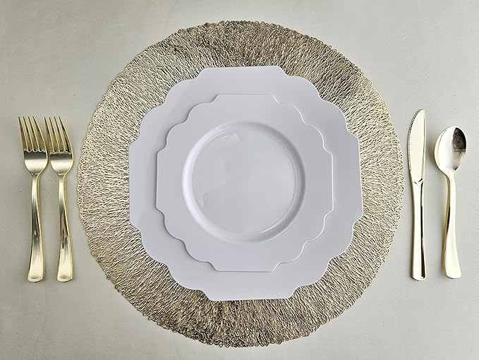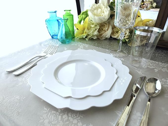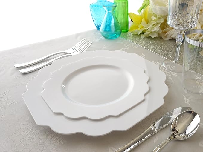 " OCCASIONS " 80 Plates Pack,(40 Guests) Heavyweight Wedding Party Disposable Plastic Plates Set -40 x 10.5'' Dinner + 40 x 8'' Salad/Dessert Plate (Imperial White)